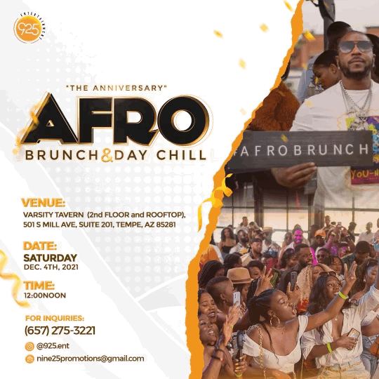 Categories: All Events Arizona Canada All Events Arizona Canada AfroBrunch 7: Press Play Get tickets from link in description 925 Y2K - Nollywood Themed Party 925 Vibes Get tickets from link in description AfroBrunch 6: Continental Sound Get tickets from link in description AfroSplash Get tickets from link in description Unkultured Nights 1 - Arizona Get tickets from link in description AfroBrunch 5 "The Anniversary" (Arizona) Get tickets from link in description Arizona Paint-Sip (09/12/2021) Get tickets from link in description Arizona Paint-Sip (09/11/2021) Get tickets from link in description